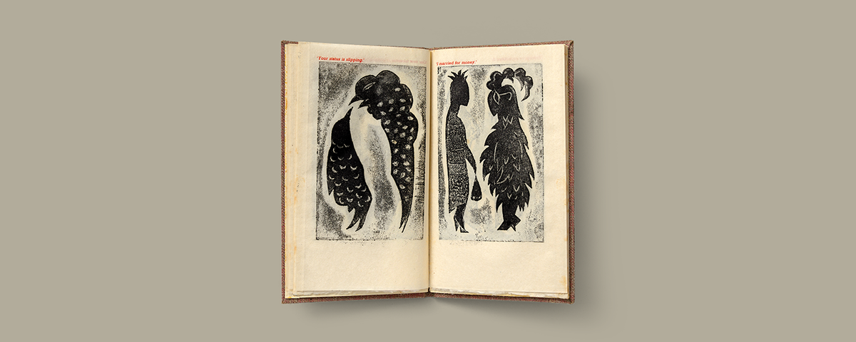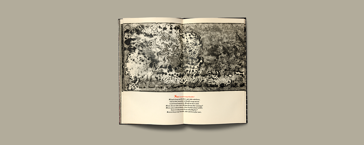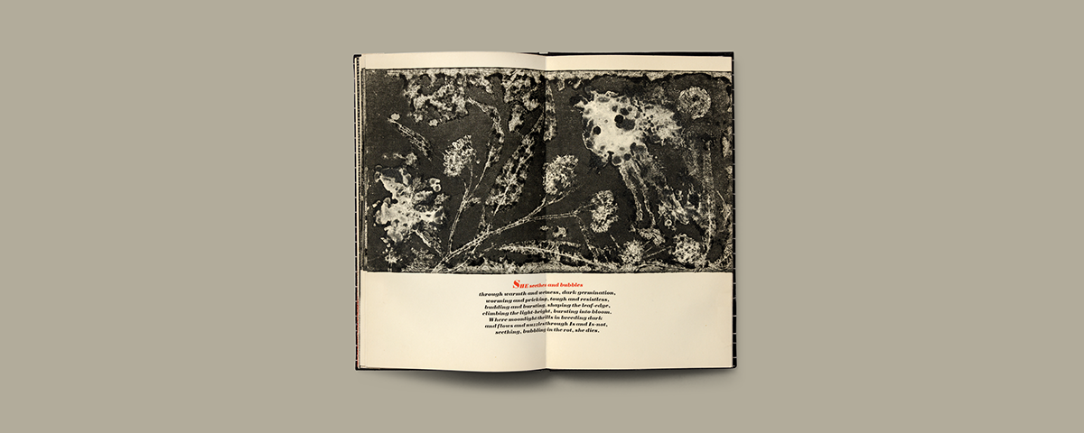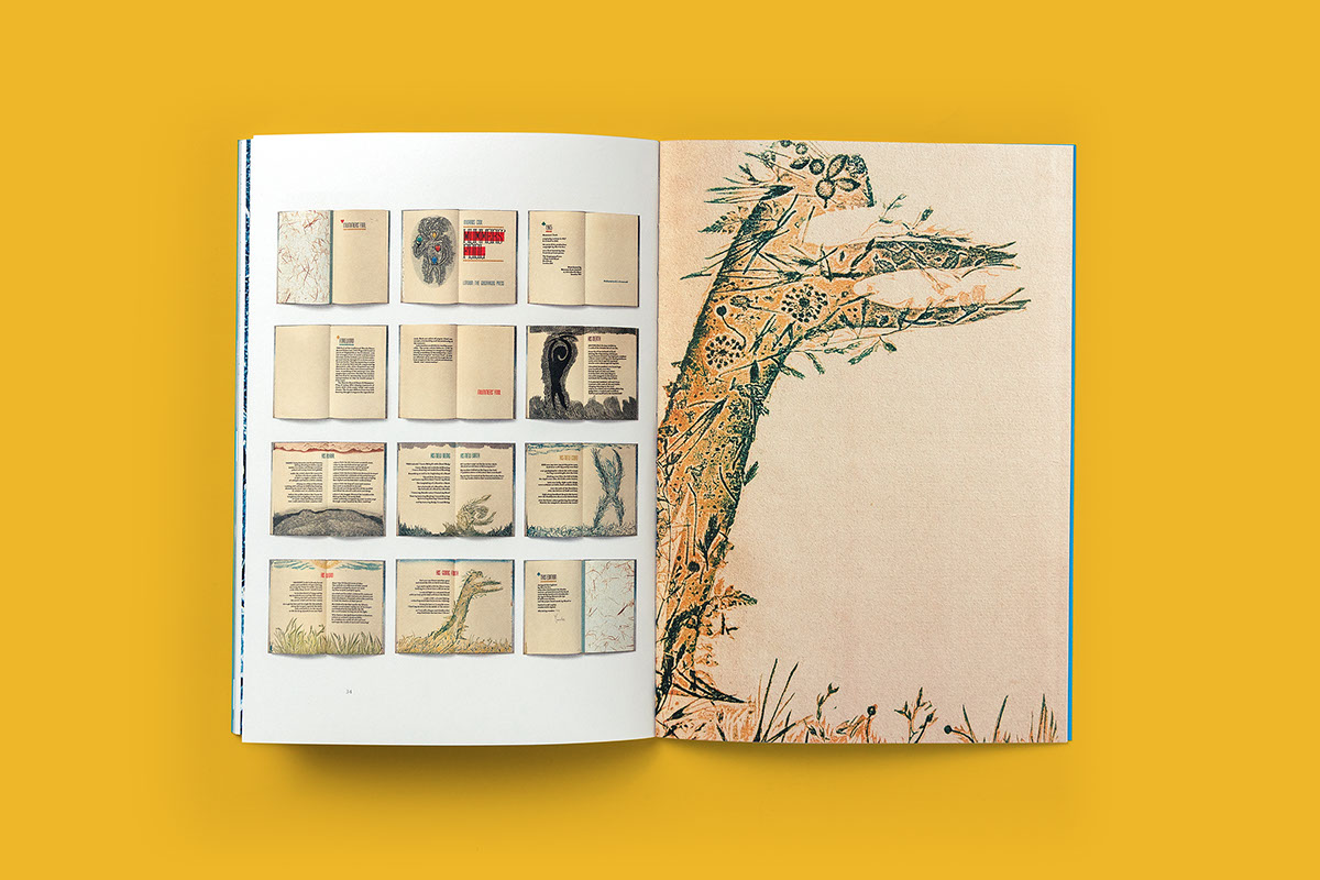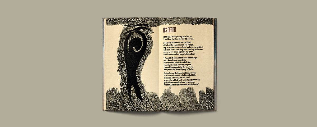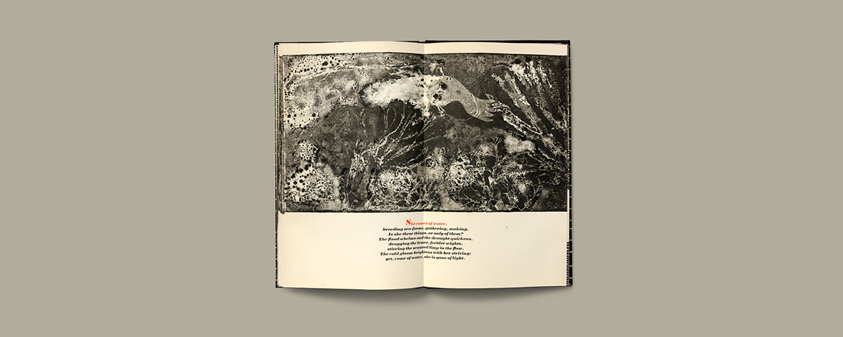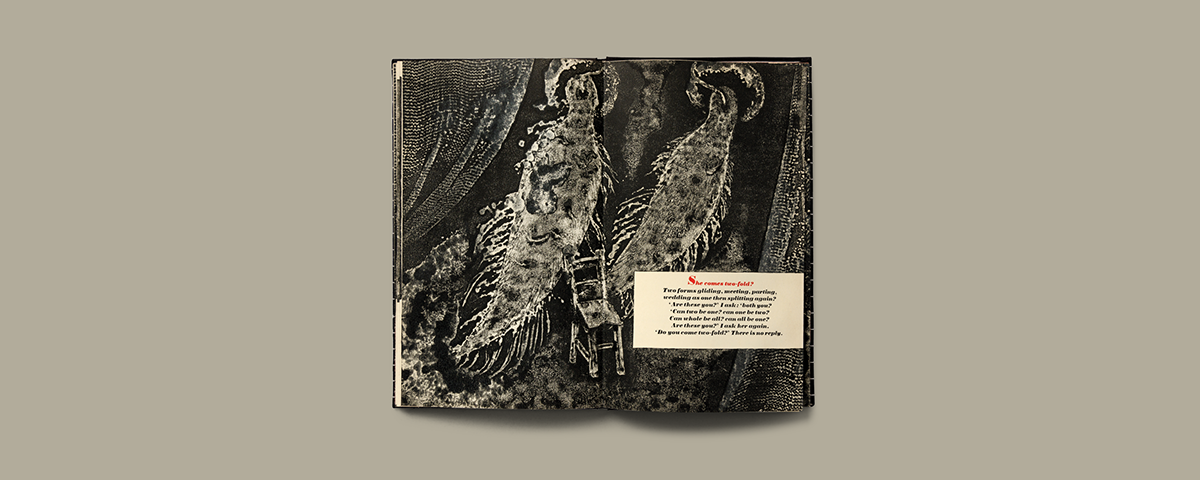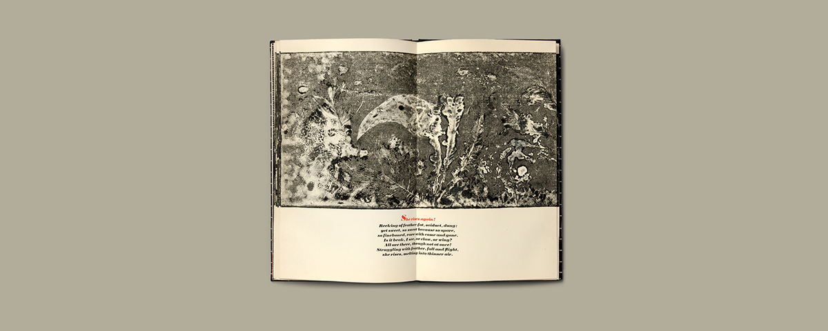 Para ilustrar o poema título, Cox produziu oito impressões indiretas feitas a partir de matrizes construídas com folhas secas, penas, luvas, um crânio de pássaro e outros materiais.