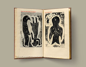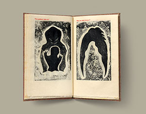 “Este pequena série de matrizes compostas por resíduos sem valor, impressos numa impressora caseira. Eles não provam nada, exceto que ainda é possível a um empenhado impressor manual manter-se, em essência, no nível dos incunábulos e começar a se aventurar a partir daí, sobretudo no campo da ilustração.”