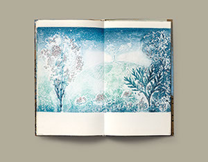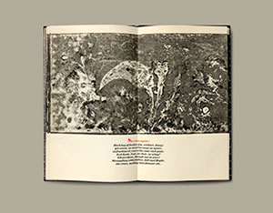 Para ilustrar o poema título, Cox produziu oito impressões indiretas feitas a partir de matrizes construídas com folhas secas, penas, luvas, um crânio de pássaro e outros materiais.