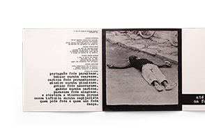 Sobre fotos de um corpo jogado na rua, Sebastião compõe um poema carregado de forte crítica social.
