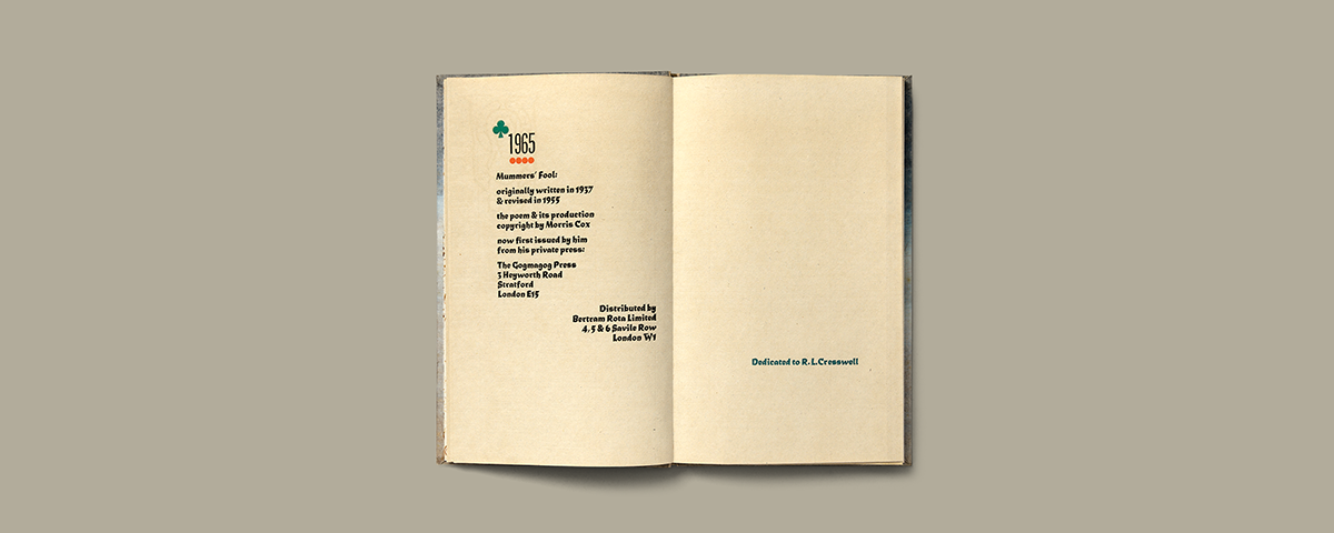 O poema, escrito por Cox em 1937 em torno de um de seus temas favoritos, as tradições folclóricas britânicas, é ilustrado com impressões indiretas tiradas a partir de matrizes confeccionadas por materiais variados, notadamente gesso e folhagem.