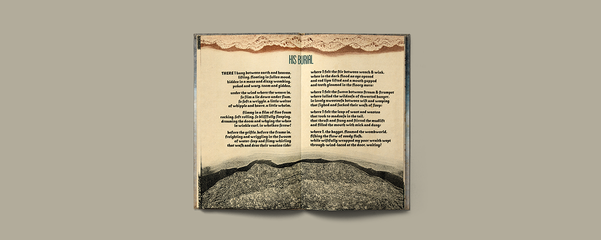 Para ilustrar o poema título, Cox produziu oito impressões indiretas feitas a partir de matrizes construídas com folhas secas, penas, luvas, um crânio de pássaro e outros materiais.