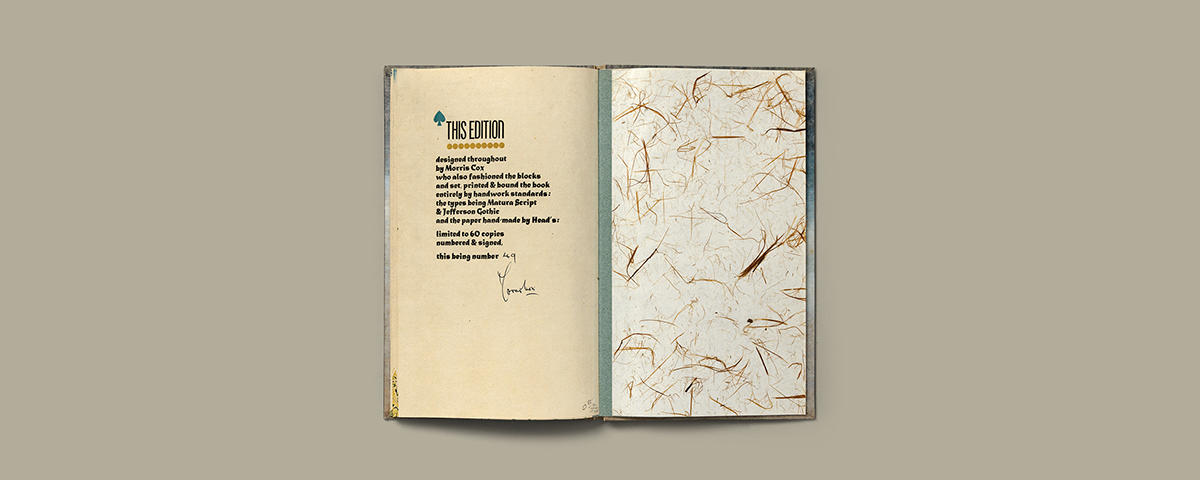 de Morris Cox publicou trinta e cinco livros. Trinta e cinco livros que Cox escreveu. Ilustrou. E diagramou. Trinta e cinco livros que ele mesmo imprimiu sozinho, utilizando máquinas construídas por ele. Trinta e cinco livros que também encadernou, um a um. Esta publicação apresenta alguns deles.